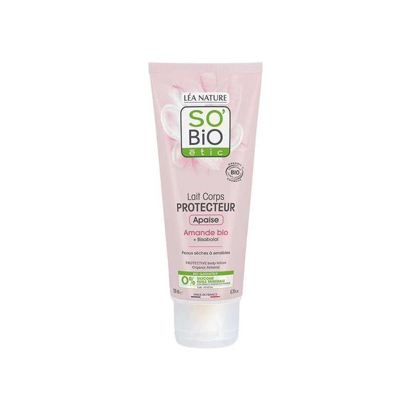 Le Lait Corps PROTECTEUR, formulĂ© avec de lâhuile dâAmande douce bio et du bisabolol, apaise les peaux sĂšches mĂȘme les plus sensibles.